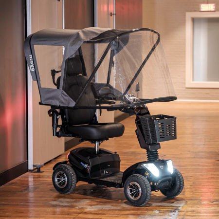 Dank einer ausgeklügelten Installation mit Hilfe der Kupplung unter dem Sitz ist das «Movo Evolution» Verdeck mit allen 4-Rad- und 3-Rad-Rollermodellen kompatibel, unabhängig vom Baujahr (für Invacare-Modelle ist unsere Mittelkupplungshalterung erforderlich).